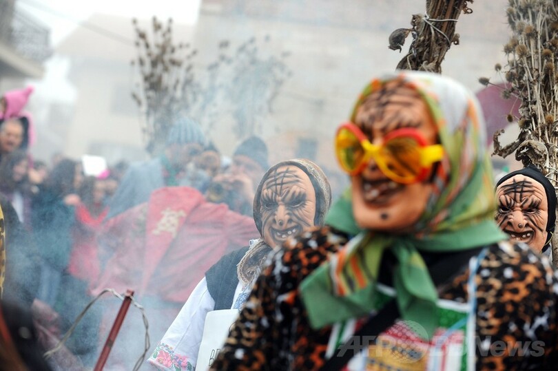 【1月16日 AFP】マケドニア南西部のベブチャニ(Vevchani)村で13日、1400年続く伝統の祭「ベブチャニ・カーニバル(Vevchani carnival)」が開催された。1400年の伝統を誇るこのカーニバルは、ユリウス暦の新年に当たる14日、聖バシリウス(Saint Basil)の祝祭日の前日に毎年行われている。(c)AFP