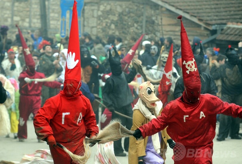 【1月16日 AFP】マケドニア南西部のベブチャニ(Vevchani)村で13日、1400年続く伝統の祭「ベブチャニ・カーニバル(Vevchani carnival)」が開催された。1400年の伝統を誇るこのカーニバルは、ユリウス暦の新年に当たる14日、聖バシリウス(Saint Basil)の祝祭日の前日に毎年行われている。(c)AFP