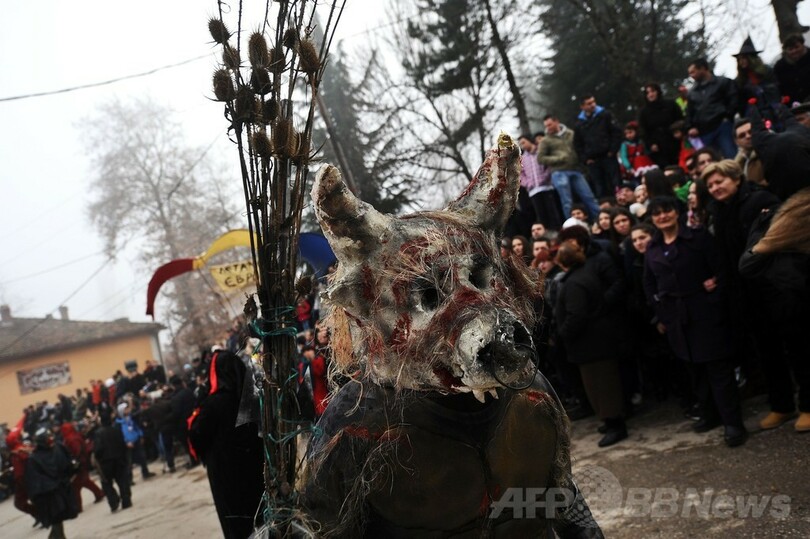 【1月16日 AFP】マケドニア南西部のベブチャニ(Vevchani)村で13日、1400年続く伝統の祭「ベブチャニ・カーニバル(Vevchani carnival)」が開催された。1400年の伝統を誇るこのカーニバルは、ユリウス暦の新年に当たる14日、聖バシリウス(Saint Basil)の祝祭日の前日に毎年行われている。(c)AFP