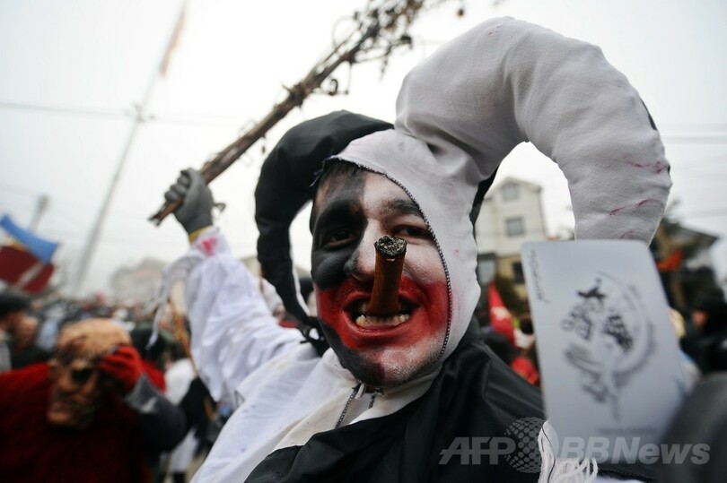 【1月16日 AFP】マケドニア南西部のベブチャニ(Vevchani)村で13日、1400年続く伝統の祭「ベブチャニ・カーニバル(Vevchani carnival)」が開催された。1400年の伝統を誇るこのカーニバルは、ユリウス暦の新年に当たる14日、聖バシリウス(Saint Basil)の祝祭日の前日に毎年行われている。(c)AFP