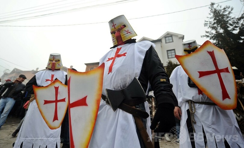 【1月16日 AFP】マケドニア南西部のベブチャニ(Vevchani)村で13日、1400年続く伝統の祭「ベブチャニ・カーニバル(Vevchani carnival)」が開催された。1400年の伝統を誇るこのカーニバルは、ユリウス暦の新年に当たる14日、聖バシリウス(Saint Basil)の祝祭日の前日に毎年行われている。(c)AFP