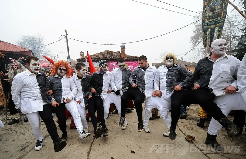 【1月16日 AFP】マケドニア南西部のベブチャニ(Vevchani)村で13日、1400年続く伝統の祭「ベブチャニ・カーニバル(Vevchani carnival)」が開催された。1400年の伝統を誇るこのカーニバルは、ユリウス暦の新年に当たる14日、聖バシリウス(Saint Basil)の祝祭日の前日に毎年行われている。(c)AFP