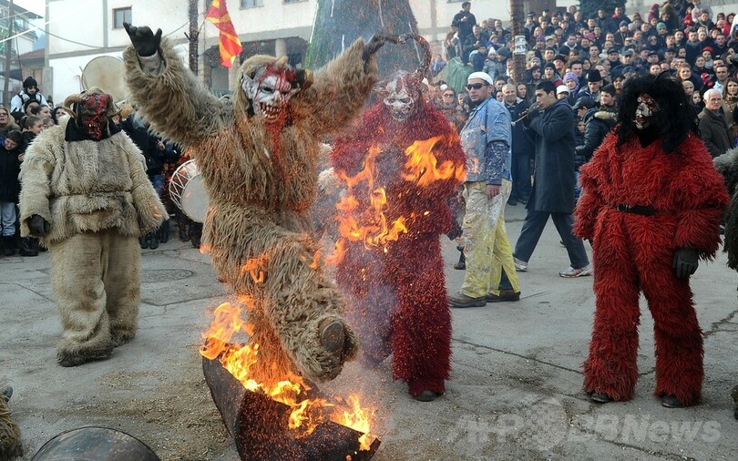 【1月16日 AFP】マケドニア南西部のベブチャニ(Vevchani)村で13日、1400年続く伝統の祭「ベブチャニ・カーニバル(Vevchani carnival)」が開催された。1400年の伝統を誇るこのカーニバルは、ユリウス暦の新年に当たる14日、聖バシリウス(Saint Basil)の祝祭日の前日に毎年行われている。(c)AFP