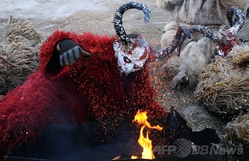 【1月16日 AFP】マケドニア南西部のベブチャニ(Vevchani)村で13日、1400年続く伝統の祭「ベブチャニ・カーニバル(Vevchani carnival)」が開催された。1400年の伝統を誇るこのカーニバルは、ユリウス暦の新年に当たる14日、聖バシリウス(Saint Basil)の祝祭日の前日に毎年行われている。(c)AFP