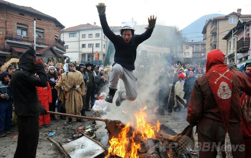 【1月16日 AFP】マケドニア南西部のベブチャニ(Vevchani)村で13日、1400年続く伝統の祭「ベブチャニ・カーニバル(Vevchani carnival)」が開催された。1400年の伝統を誇るこのカーニバルは、ユリウス暦の新年に当たる14日、聖バシリウス(Saint Basil)の祝祭日の前日に毎年行われている。(c)AFP