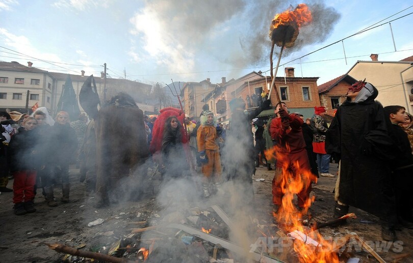 【1月16日 AFP】マケドニア南西部のベブチャニ(Vevchani)村で13日、1400年続く伝統の祭「ベブチャニ・カーニバル(Vevchani carnival)」が開催された。1400年の伝統を誇るこのカーニバルは、ユリウス暦の新年に当たる14日、聖バシリウス(Saint Basil)の祝祭日の前日に毎年行われている。(c)AFP