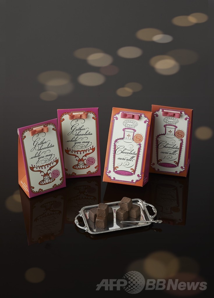 ■楽しめるうちに楽しもう。恋もチョコレートも/Gather Chocolates while you may.(ピンク)、チョコレートは万能薬/Chocolates cure all.(オレンジ)