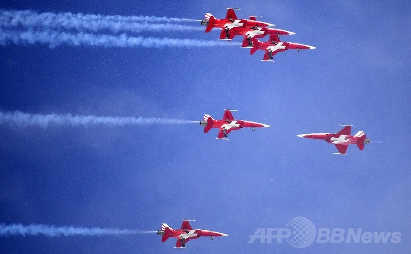 【1月18日 AFP】国際スキー連盟(FIS)のアルペンスキーW杯(Alpine World Cup)が開催中のスイス・ベルン(Bern)州ウェンゲン(Wengen)のアイガー(Eiger Mount)山辺くで航空ショーが行われ、スイス空軍のアクロバット飛行隊「パトルイユ・スイス(Patrouille Suisse)」が戦闘機による曲芸飛行を披露した。(c)AFP