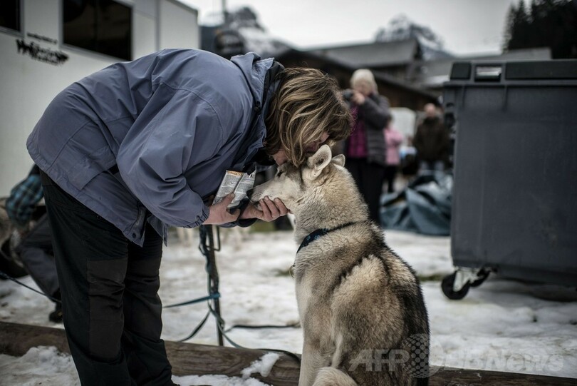 【1月19日 AFP】仏南東部ローヌアルプ(Rhone-Alpes)地域圏の村、シス・フェール・ア・シュバル(Sixt-Fer-a-Cheval)で13日、アルプスを横断する国際犬ぞりレース「オデュッセイア大会(La Grande Odyssee)」が開催された。(c)AFP