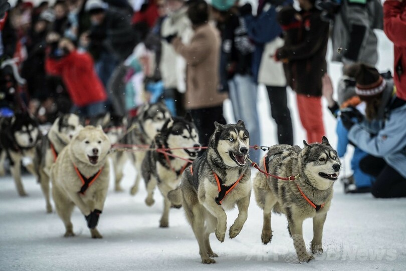 【1月19日 AFP】仏南東部ローヌアルプ(Rhone-Alpes)地域圏の村、シス・フェール・ア・シュバル(Sixt-Fer-a-Cheval)で13日、アルプスを横断する国際犬ぞりレース「オデュッセイア大会(La Grande Odyssee)」が開催された。(c)AFP