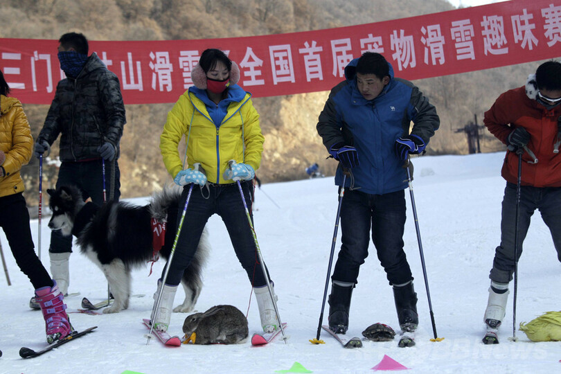 ペットのスキー大会でカメがウサギに勝つ、中国