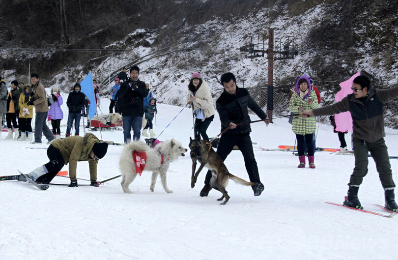 ペットのスキー大会でカメがウサギに勝つ、中国