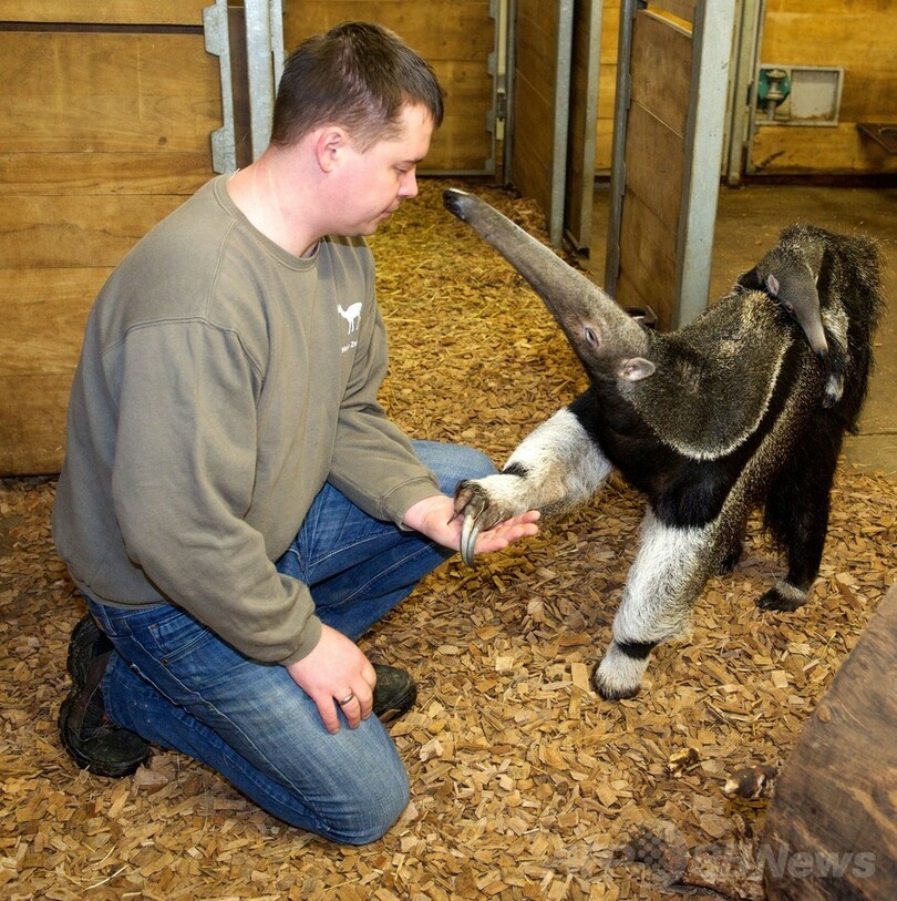 【1月24日 AFP】ドイツ東部ハレ(Halle)の動物園で23日、昨年11月に生まれた赤ちゃんアリクイの親子の様子が公開された。