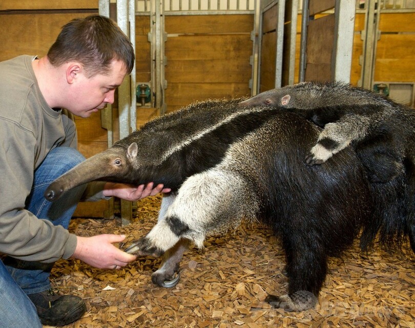 乗り心地最高?お母さんの背にしがみつく赤ちゃんアリクイ