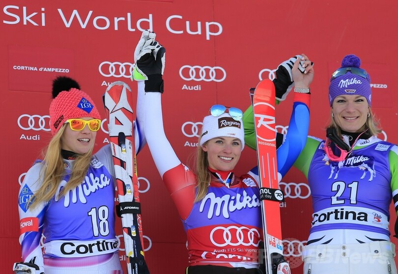 【1月27日 AFP】アルペンスキーW杯2013-14は26日、イタリアのコルティーナ・ダンペッツォ(Cortina d'Ampezzo)で女子スーパー大回転第5戦が行われ、スイスのララ・グート(Lara Gut)が1分27秒81で優勝を飾った。