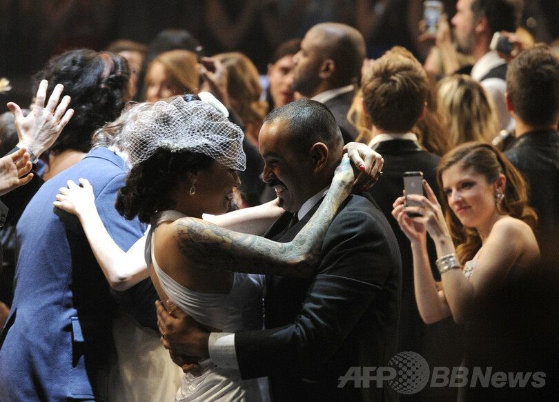 米ニューヨーク・タイムズ(New York Times)によるとこの集団結婚式は、マックルモア&ライアン・ルイスのコンサートでステージ上でのプロポーズ・イベントが行われていることを知ったグラミー賞授賞式のプロデューサー、ケン・エールリッヒ(Ken Ehrlich)氏が、2人に持ち掛けたものだという。(c)AFP