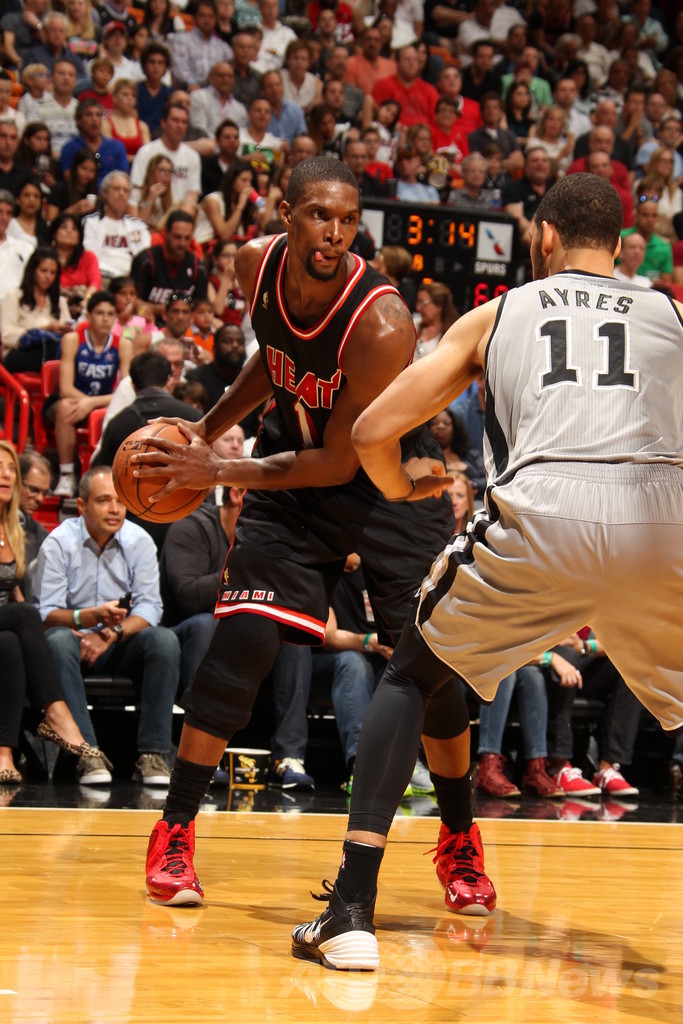 ヒートはクリス・ボッシュ(Chris Bosh)が24得点、レブロン・ジェームズ(LeBron James)が18得点を挙げる活躍をみせ、スパーズを圧倒した。