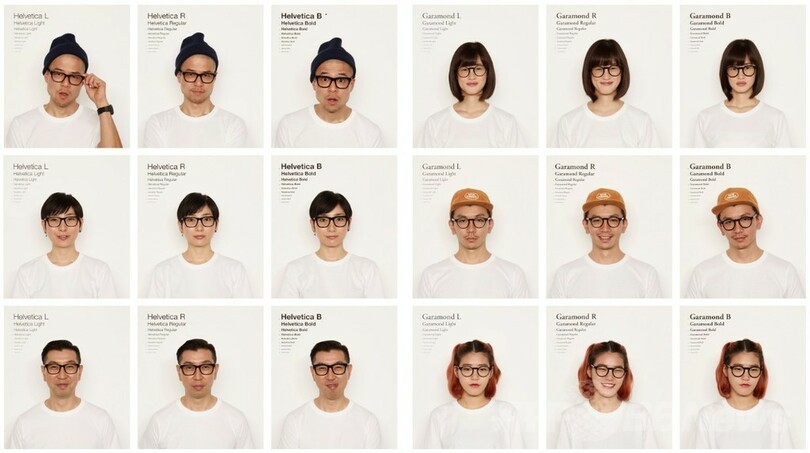 今回発売するのは、何百年にもわたるタイポグラフィの歴史の中でも、優れた普遍性と個性を持つ2つの書体「Helvetica」と「Garamond」からインスピレーションを得た眼鏡。フレームの太さは「Light」「Regular」「Bold」の3種類、カラーは「Black」「Tortoise(べっこう)」「Clear」の3種類を用意。レンズはサングラスにも対応しており、書体と太さ、カラー、そしてレンズを組み合わせた全36種類からお好みの一本をチョイスできる。