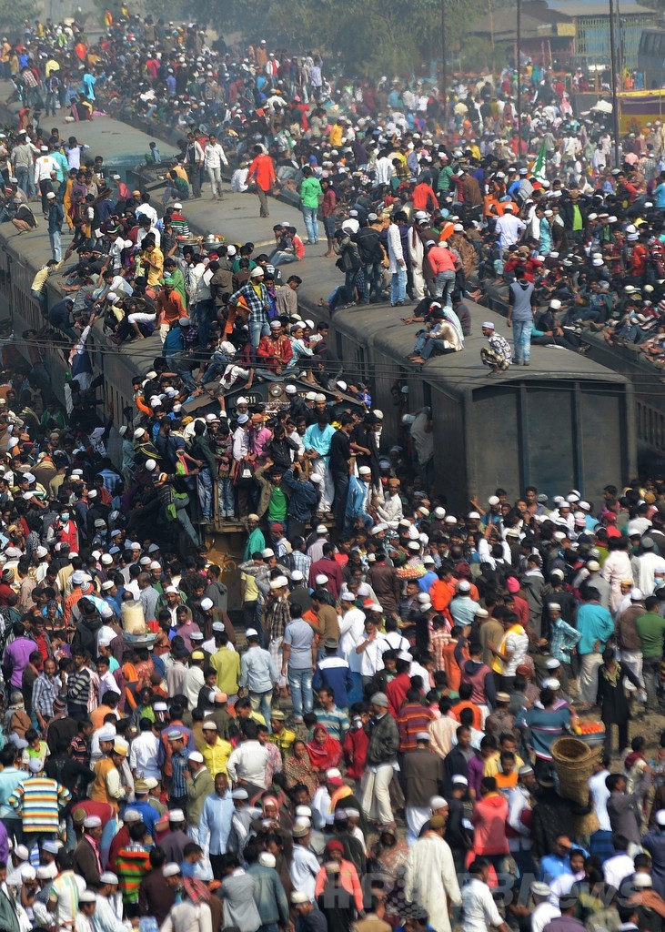 列車の屋根にも人満載、最大規模のイスラム集会 バングラデシュ