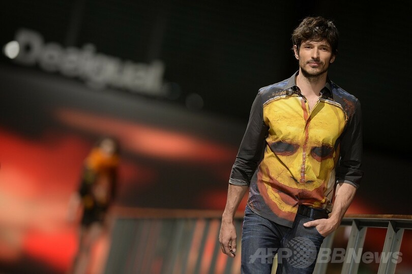 28日には、「デシグアル(Desigual)」が新作を発表し、ランウェイにはロシア人モデルのイリーナ・シェイク(Irina Shayk)も登場した。(c)AFP