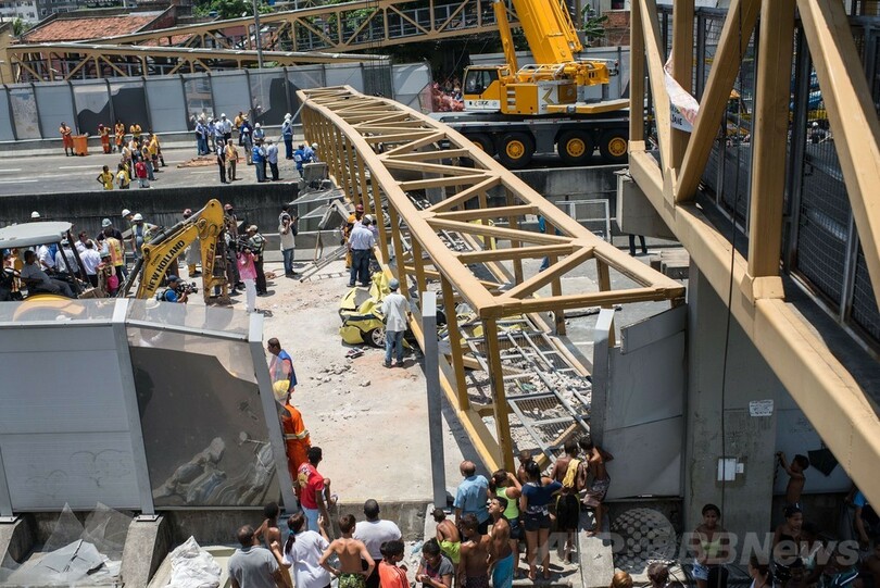 トラックが歩道橋に衝突、橋桁落下して4人死亡 ブラジル・リオ