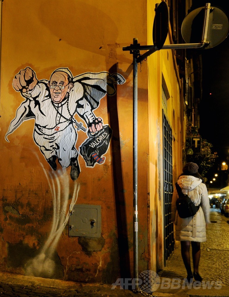 【1月29日 AFP】バチカン(ローマ法王庁)は28日、架空のヒーロー「スーパーマン」のポーズをとるフランシスコ(Francis)法王(77)を描いたグラフィティ(落書き)の写真を、マイクロブログのツイッター(Twitter)に投稿した。