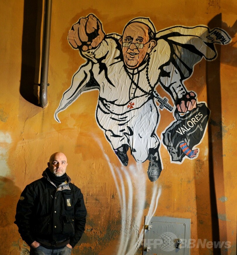 【1月29日 AFP】バチカン(ローマ法王庁)は28日、架空のヒーロー「スーパーマン」のポーズをとるフランシスコ(Francis)法王(77)を描いたグラフィティ(落書き)の写真を、マイクロブログのツイッター(Twitter)に投稿した。
