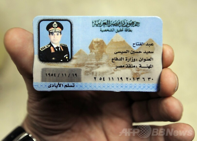 【2月2日 AFP】エジプト・カイロ(Cairo)市内では、3月から4月に予定されている大統領選への出馬が予想されるアブデルファタフ・サイード・シシ(Abdel Fattah Said al-Sisi)同国軍最高評議会議長の「身分証明書」が売られている。