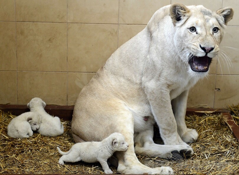 赤ちゃん3匹が誕生、ポーランドのホワイトライオン