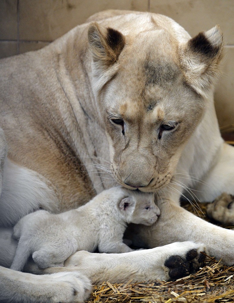 赤ちゃん3匹が誕生、ポーランドのホワイトライオン