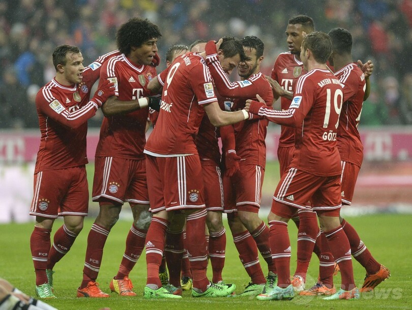 本拠地アリアンツ・アレーナ(Allianz Arena)でマリオ・ゲッツェ(Mario Goetze)、フランク・リベリ(Frank Ribery)、アリエン・ロッベン(Arjen Robben)、そしてボンフィム・ダンテ(Dante Bonfim Costa Santos)らが得点し、不調のフランクフルトを相手に大勝したバイエルンは、これで2位以下との勝ち点差を13とした。