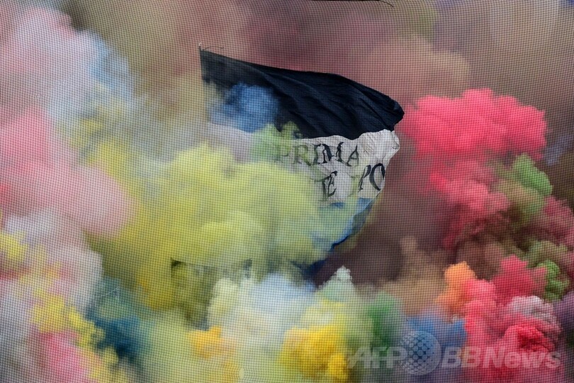 これで前年11月以来の敗戦となったナポリは3位を守ったものの、同日行われた試合で首位ユベントス(Juventus)がインテル(Inter Milan)を3-1で下したため、その勝ち点差は15に開いている。(c)AFP/Justin DAVIS