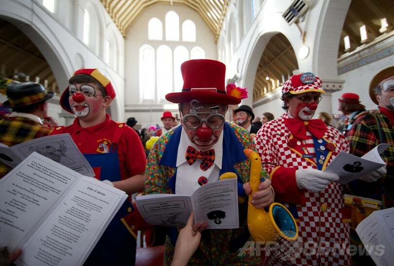 【2月5日 AFP】英国の道化師の祖と言われる「クラウン・ジョーイ(Clown Joey)」ことジョセフ・グリマルディ(Joseph Grimaldi、1837年死去)を称え、毎年ピエロたちが集まって行われている礼拝が今年も2日、英ロンドン東部ダルストン(Dalston)の教会で行われた。(c)AFP