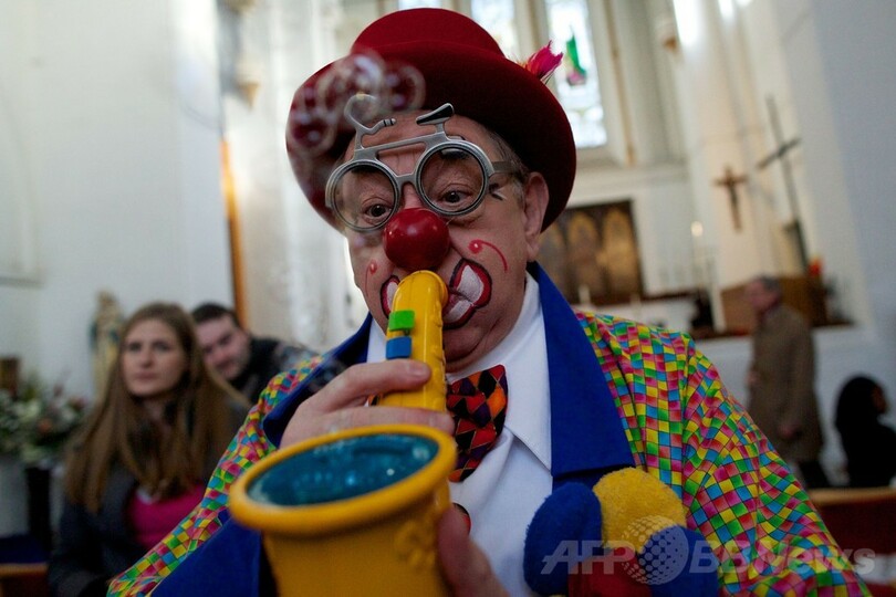 【2月5日 AFP】英国の道化師の祖と言われる「クラウン・ジョーイ(Clown Joey)」ことジョセフ・グリマルディ(Joseph Grimaldi、1837年死去)を称え、毎年ピエロたちが集まって行われている礼拝が今年も2日、英ロンドン東部ダルストン(Dalston)の教会で行われた。(c)AFP