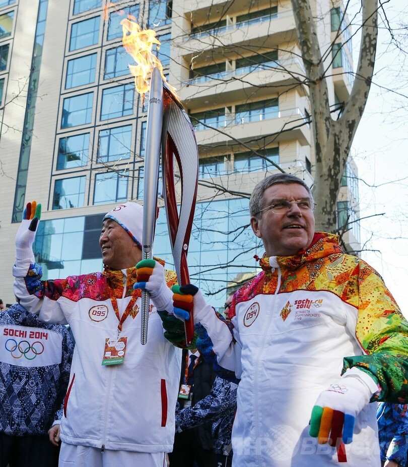五輪 ソチ五輪聖火リレーもいよいよ大詰め、7日に開会式 2014年2月7日 6:29 発信地:ソチ/ロシア [ ロシア・CIS ロシア ] このニュースをシェア ‹ › ❮ 1/10 ❯ ソチ(Sochi)市内で行われた聖火リレーに参加した国連(UN)の潘基文(バン・キムン、Ban Ki-moon)事務総長と国際オリンピック委員会(International Olympic Committee、IOC)のトーマス・バッハ(Thomas Bach)会長(2014年2月6日撮影)。(c)AFP/SHAMIL ZHUMATOV 画像作成中 ! 【2月7日 AFP】ソチ冬季五輪の開会式を7日に控え、聖火リレーが大詰めを迎えた。 2013年10月に始まった聖火リレーは、冬季五輪史上最長となり、ロシア国内全83地域を回った。(c)AFP 五輪 一覧へ> メディア・報道関係・法人の方向け 写真・動画 購入のお問合せ>