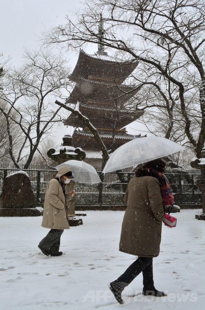 【2月8日 AFP】前線を伴って東に進む低気圧の影響で東京都心では8日未明から雪が降り始め、朝の時点で数センチの積雪が観測された。このほか国内の広い範囲で雪になっている。