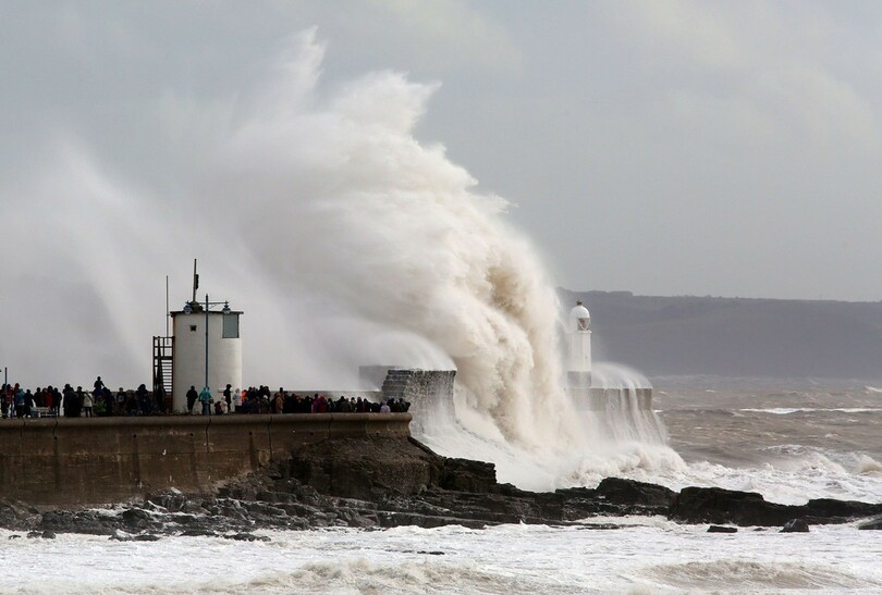 ニュース ライフ 英南西部に強風と豪雨、港に押し寄せる高波 2014年2月9日 13:15 発信地:ウェールズ/英国 [ ヨーロッパ 英国 ] このニュースをシェア ‹ › ❮ 3/7 ❯ 英ウェールズ(Wales)南部ポースコール(Porthcawl)の港の岸壁に打ち付ける高波を間近で見る人たち(2014年2月8日撮影)。(c)AFP/GEOFF CADDICK 画像作成中 ! 【2月9日 AFP】英イングランド(England)南西部とウェールズ(Wales)南部は8日、強風と豪雨に見舞われ、一部地域では最大瞬間風速は35メートルを超えた。 ウェールズ南部のポースコール(Porthcawl)では港の岸壁に押し寄せる高波を見ようと多くの人たちが集まった。(c)AFP ライフ 一覧へ> メディア・報道関係・法人の方向け 写真・動画 購入のお問合せ>