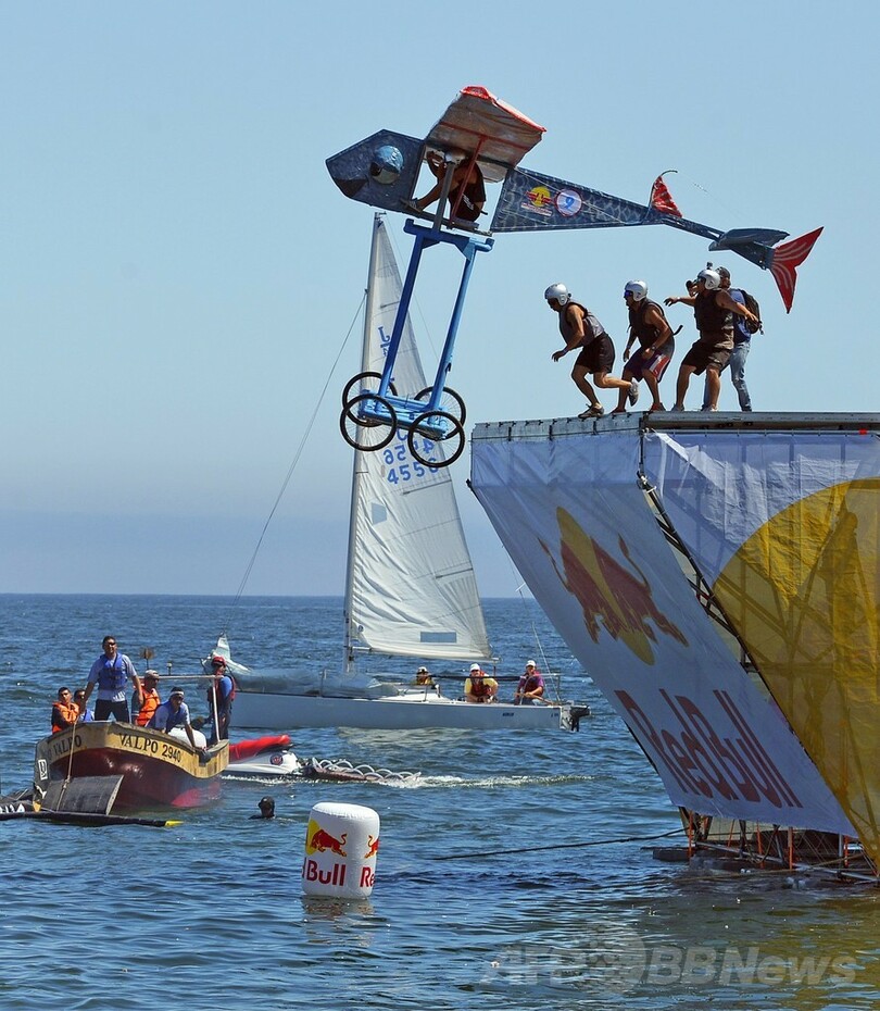 【2月10日 AFP】南米チリ中部バルパライソ(Valparaiso)で9日、人力飛行機コンテスト「フルークターク(Flugtag)」が開催された。