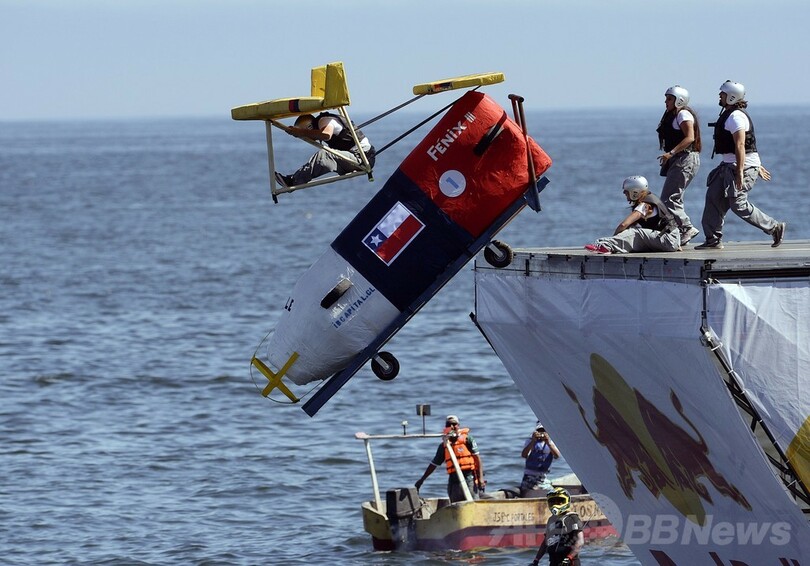 【2月10日 AFP】南米チリ中部バルパライソ(Valparaiso)で9日、人力飛行機コンテスト「フルークターク(Flugtag)」が開催された。