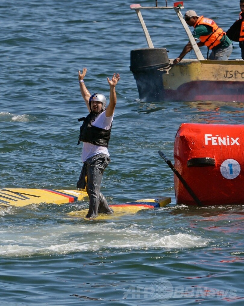 【2月10日 AFP】南米チリ中部バルパライソ(Valparaiso)で9日、人力飛行機コンテスト「フルークターク(Flugtag)」が開催された。