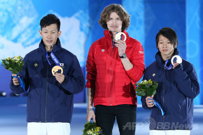 【2月13日 AFP】ソチ冬季五輪で12日、スノーボード男子ハーフパイプのメダル授与式が行われ、銀メダルの平野歩夢(Ayumu Hirano)と銅メダルの平岡卓(Taku Hiraoka)がそれぞれメダルを手にした。