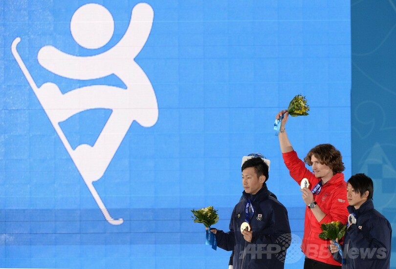 スノーボード男子ハーフパイプのメダル授与式、ソチ五輪