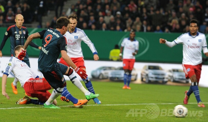 大会連覇を狙うバイエルンはマリオ・マンジュキッチ(Mario Mandzukic)がハットトリックを達成した一方、低迷するハンブルガーはベルト・ファン・マルワイク(Bert van Marwijk)監督の下で臨む最後の試合になるかもしれないというところで、守備陣が総崩れとなった。