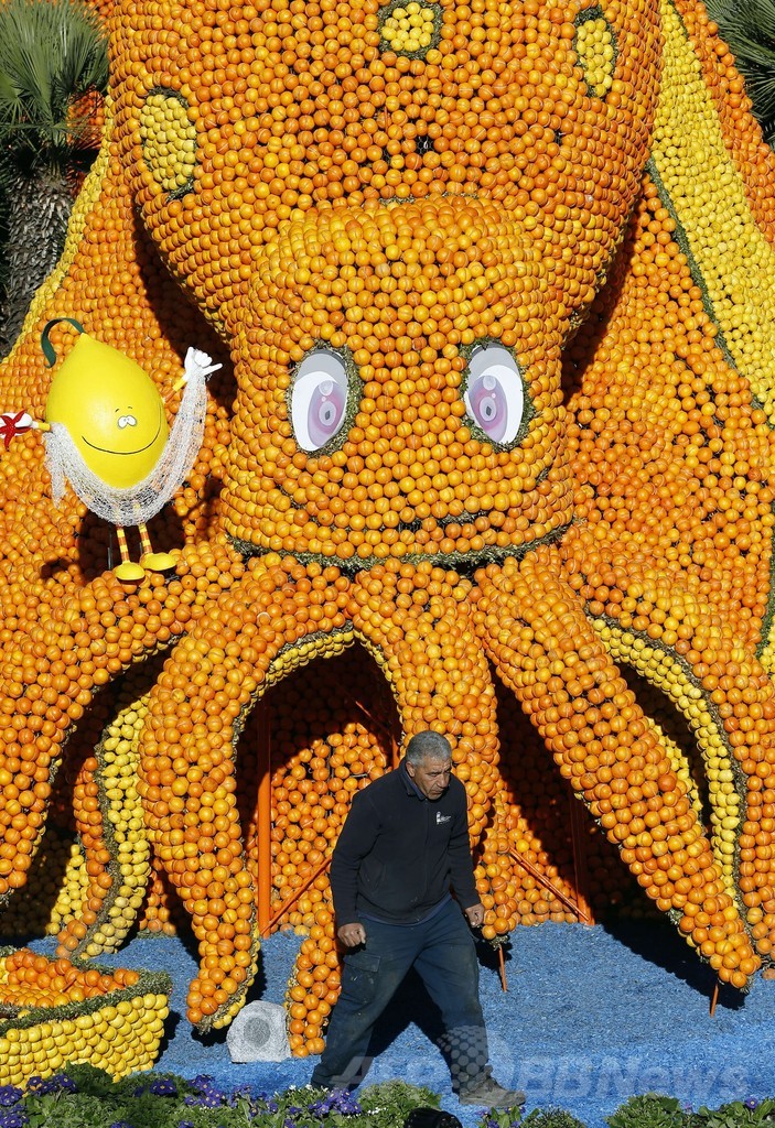 【2月16日 AFP】南仏コート・ダジュール(French riviera、フレンチリビエラ)のマントン(Menton)で14日、毎年恒例の「レモン祭り(Fete du Citron)」の開幕に向けたオレンジとレモンの巨大オブジェ作りが大詰めを迎えた。