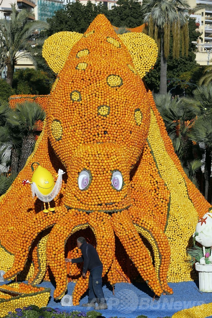 【2月16日 AFP】南仏コート・ダジュール(French riviera、フレンチリビエラ)のマントン(Menton)で14日、毎年恒例の「レモン祭り(Fete du Citron)」の開幕に向けたオレンジとレモンの巨大オブジェ作りが大詰めを迎えた。
