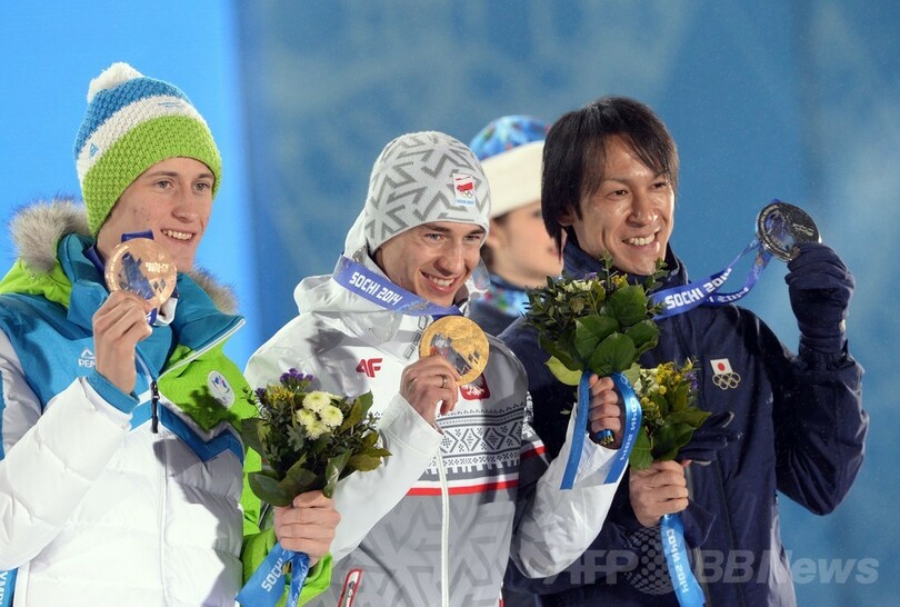 五輪 日本人選手 葛西がメダル授与式に出席、銀メダルを手にポーズ ソチ五輪 2014年2月17日 7:47 発信地:ソチ/ロシア [ ロシア・CIS ロシア ] このニュースをシェア ‹ › ❮ 13/15 ❯ ソチ冬季五輪、スキージャンプ個人ラージヒルのメダル授与式でポーズをとる(左から)ペテル・プレヴツ(Peter Prevc)、カミル・ストフ(Kamil Stoch)、葛西紀明(Noriaki Kasai、2014年2月16日撮影)。(c)AFP/ANDREJ ISAKOVIC 画像作成中 ! 【2月17日 AFP】ソチ冬季五輪で16日、スキージャンプ個人ラージヒルのメダル授与式が行われ、葛西紀明(Noriaki Kasai)に銀メダルが授与された。(c)AFP 五輪 一覧へ> メディア・報道関係・法人の方向け 写真・動画 購入のお問合せ>
