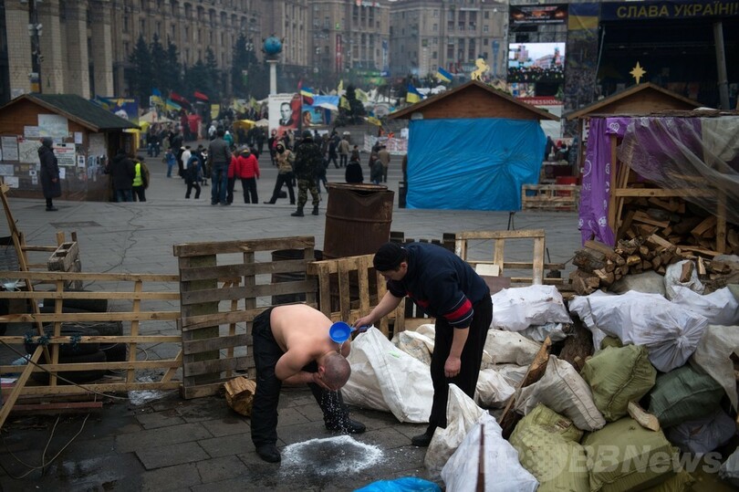 ウクライナでは、親ロシア路線をとるビクトル・ヤヌコビッチ(Viktor Yanukovych)大統領が欧州連合(EU)との連合協定への署名を見送ったことがきっかけで起きた反政権デモが、警官隊との衝突に発展。国内は3か月近くにわたる混乱に陥り、首都キエフ(Kiev)では市庁舎などが2か月間にわたって占拠されていた。