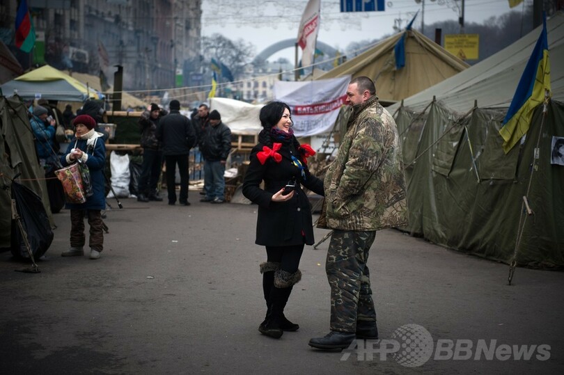 ウクライナでは、親ロシア路線をとるビクトル・ヤヌコビッチ(Viktor Yanukovych)大統領が欧州連合(EU)との連合協定への署名を見送ったことがきっかけで起きた反政権デモが、警官隊との衝突に発展。国内は3か月近くにわたる混乱に陥り、首都キエフ(Kiev)では市庁舎などが2か月間にわたって占拠されていた。