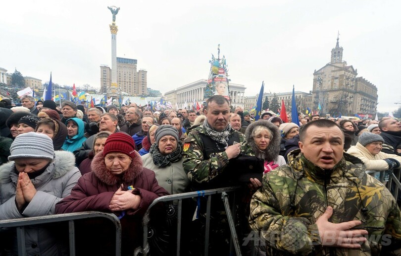ウクライナでは、親ロシア路線をとるビクトル・ヤヌコビッチ(Viktor Yanukovych)大統領が欧州連合(EU)との連合協定への署名を見送ったことがきっかけで起きた反政権デモが、警官隊との衝突に発展。国内は3か月近くにわたる混乱に陥り、首都キエフ(Kiev)では市庁舎などが2か月間にわたって占拠されていた。