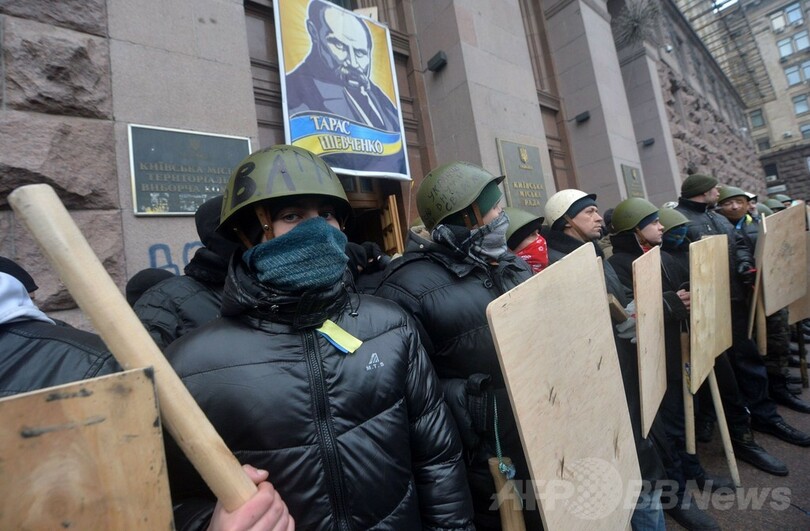ウクライナでは、親ロシア路線をとるビクトル・ヤヌコビッチ(Viktor Yanukovych)大統領が欧州連合(EU)との連合協定への署名を見送ったことがきっかけで起きた反政権デモが、警官隊との衝突に発展。国内は3か月近くにわたる混乱に陥り、首都キエフ(Kiev)では市庁舎などが2か月間にわたって占拠されていた。